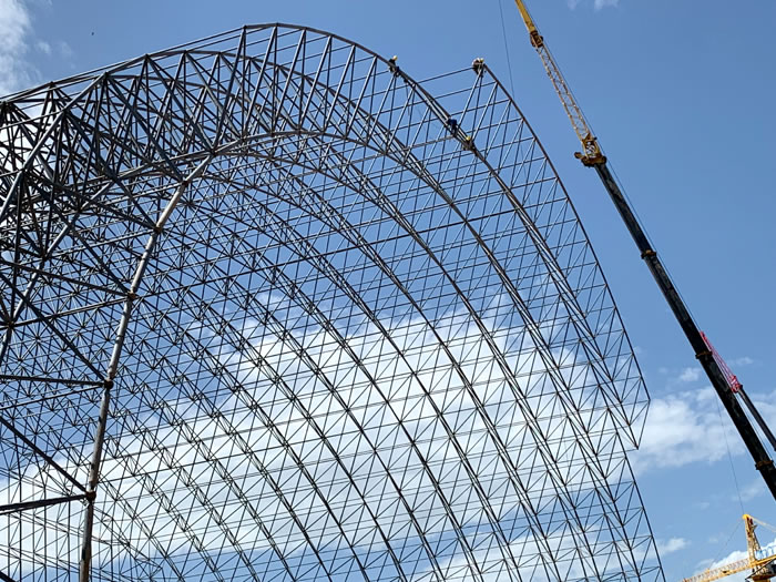 (2)网架加工前应对现场尺寸进行复测,确认无误后方可进行加工、安装;网架制作、运输、安装应遵守《空间网格结构技术规程》JGJ7-2010、《钢网架黑河螺栓球节点》JG/T 10-2009、《钢网架黑河螺栓球节点用高强度螺栓》 GB/T 16939-2016、《钢结构黑河工程黑河施工规范》 GB50755-2012、《钢结构黑河工程施工质量验收标准》 GB50205-2020。
